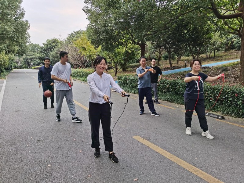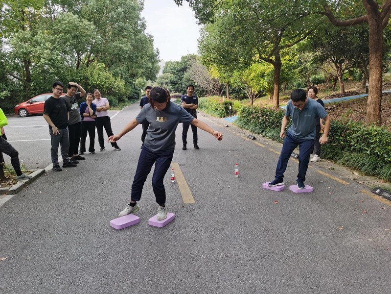 活动第二站,工会组织全体职工举行了一场别开生面的趣味运动会。运动会在屠启宇副所长带领的热身运动中拉开了帷幕,职工们个个精神饱满、斗志昂扬,在大家积极参与下,顺利完成了“摸石过河”、两人三足跑,跳绳、乒乓、篮球接力跑等个人和集体项目。职工们在热闹非凡的比赛中挥洒汗水,在和谐愉快的氛围中展现激情与活力。