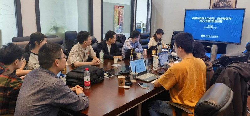 刘玉博助理研究员分享了题为“2000年以来中国城市群人口布局:空间特征及‘中心-外围’机理阐释”的报告,对2000-2020年以来中国19个城市群的人口格局、发展趋势和影响机制进行了分析研究,对优化提升类、发展壮大类和培育发展类等三类城市群提出了针对性发展建议。与会科研人员对该论文的研究方法、检验模型、机制解析等进行了热烈讨论,普遍认为该研究具有很好的学术规范性和实践应用性,并对下一步的延伸研究提出了建议。