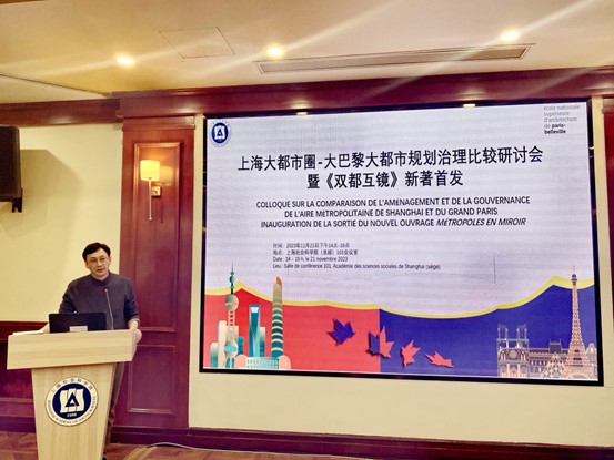 2023年11月21日下午14点,上海大都市圈-大巴黎大都市规划治理比较研讨会暨《双都互镜》新著发布会在上海社会科学院召开,本次活动由上海社会科学院皇朝娱乐 与巴黎美丽城国立高等建筑学院共同承办。