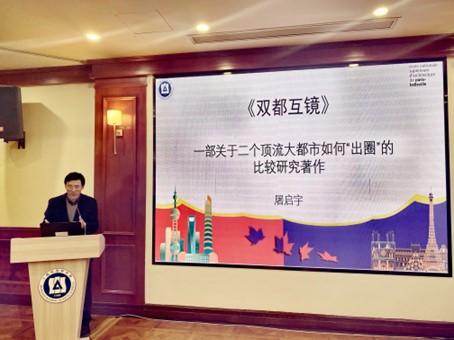 活动的第一项议程是《双都互镜》新书首发仪式,由上海社会科学院城市与人口研究所副所长屠启宇主持。上海社会科学院皇朝娱乐 副所长周海旺、上海社会科学院出版社编辑部主任应韶荃、上海社会科学院智库建设基金会秘书长李轶海等嘉宾到场致辞。周海旺用法国梧桐和东方梧桐来比喻大上海与大巴黎之间的奇妙关系,并希望双方以《双都互镜》比较研究著作为起点,合作共赢,共建美好未来。应韶荃希望《双都互镜》的出版能够带动中法两国更多专家学者的积极性,推动国际比较的对话深入,促进国家之间理念的借鉴和思考,激发更多有意义的跨国比较案例的探索。李轶海指出《双都互镜》是上海社会科学院智库建设基金会的一个新尝试,相信上海社会科学院城市与人口研究所和巴黎美丽城国立高等建筑学院两家具有强大实力单位的合作,必然会带动中法两国未来更多更紧密的学术交流。